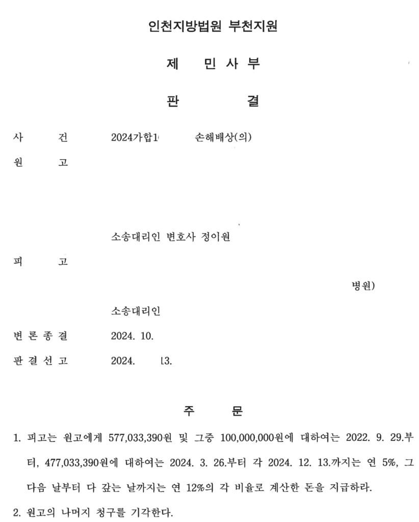 원고주장 모두가 이유있다고 판단하여 원고 청구금액 전부를 인정하였습니다.