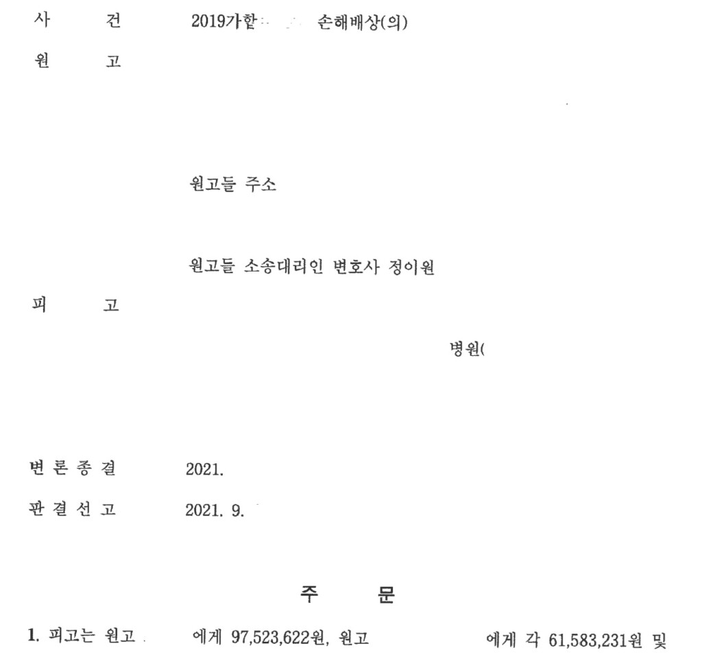 법원에서는 사망자 및 가족들에게 총 금2억원을 지급하라는 판결을 내렸습니다.